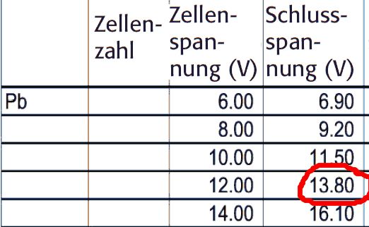 Zellenspannung 12V, aha. Wer weiß wo da noch der Fehlerteufel gewütet hat aber es kann natürlich auch eine exotische Firmwareversion sein. Jedenfalls sind die tatsächlichen Limits alle auf dem Display zu sehen. Naja außer dem genauen Ladeschlußstrom leider aber der ergibt sich evt. irgendwie aus den Parametern oder aus einer der zahlreichen Handbücher.