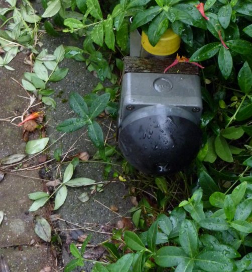 Hallo, so einen großen Taster wie im Bild,nutze ich seit ca. 15 Jahren als Fußschalter zum öffnen von einem Gartentürchen. Ist also sehr robust und hat seine Eignung für außen gut bestätigt. Den hatte ich im Elektrohandel besorgt. Zum Vergleich, die Betonsteine haben eine Breite von 10cm. Gruß Öletronika