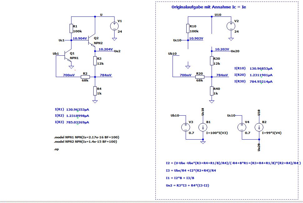 LTSpice kenne ich, nutz das schon seit vielen Jahren. Ist ein echter Geheimtip! Vielen Dank nochmal, bin echt schwer aus der Übung, da helfen so Hinweise und Musterlösungen echt enorm!