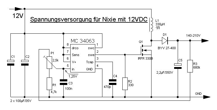 Ich habe noch eine Applikation mit dem MC34063. Vin 4,5V-12V, Vout 190V bei 5 mA. Spule musst du aber selber wickeln. Gruß Thomas