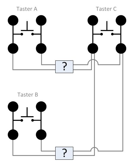 Der Vorschlag von Martin K ist Käse, denn er schaltet einfach die beiden Taster A und B zusammen. Dann erfüllen sie ihren ursprünglichen Zweck nicht mehr.