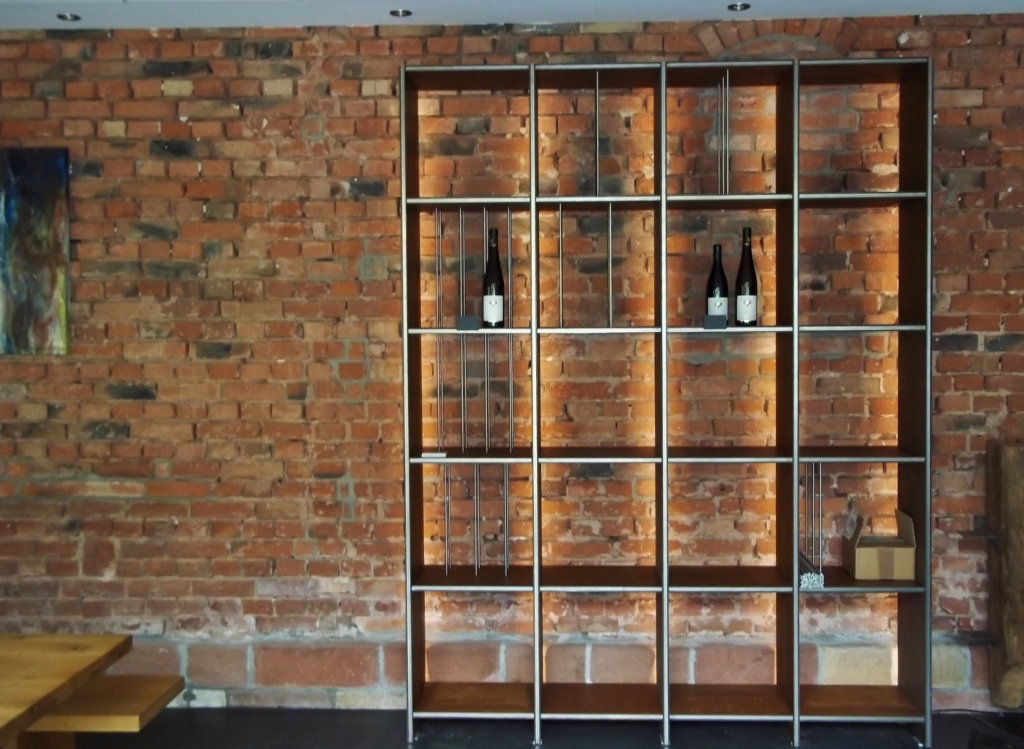 Ich möchte jetzt nicht pingelig sein, aber für Wein würde ich mir ein Regal wünschen, in dem die Flaschen LIEGEN können. Zumindest wenn es ums lagern geht. Vielleicht steht das Regal ja in einem Verkaufsraum wo die Flaschen nicht lange drinstehen?