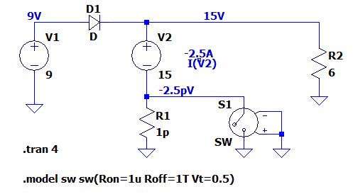 Thomas Elger schrieb: > David R. schrieb: >> Du addierst Spannungsquellen und durch den Widerstand sind die Knoten in >> der Simulation rechnerisch voneinander getrennt. Da das alles ideale >> Spannungsquellen sind hängt die Spannung nicht von der Belastung ab. >> Knoten verbunden ist ein großer unterschied zu einem beliebig kleinen >> Widerstandswert. > > Ich verstehe nicht, was Du meinst!? Auch ich hatte zuerst gedacht, daß beide Spannungsquellen über die Diode und den 1pOhm Widerstand "kurzgeschlossen" sind. Beim zweiten Anlauf fiel mir dann auf, daß die Diode in Sperrrichtung ist. Dadurch ist die linke Quelle stromlos und die rechte Quelle versorgt allein den Lastwiderstand. Wenn allerdings in einer späteren Simulation die Spannung der linken Quelle irgend wann gößer gewählt wird als die Spannung der rechten Quelle, dann fließt in der Tat ein fast unbegrenzter Strom durch beide Quellen. Deshalb der Einwand, daß die Schaltung so nicht sinnvoll ist. Eigentlich benötigt jede der Quellen an dessen Ausgang eine Diode, also insgesamt zwei Dioden.