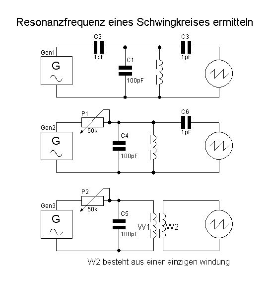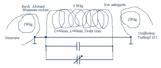 felix schrieb: >Was genau meinen Sie mit "Koppelwiderstand"? >Ist damit der Widerstand zum Abgreifen gemeint? Hier sind ein paar Beispiele wie man es machen kann. Man kann mit einem Widerstand oder Kondensator ein und auskoppeln. Wenn man einen eistellbaren Widerstand verwendet, kann man damit auch gleich den Resonanzwiderstand ermitteln. Der Widerstand wird erst einmal groß eingestellt und der Schwingkreis auf Resonanz gebracht. Dann wird der Widerstand auf 0 gestellt und mit dem Oszillograf die Spannung gemessen. Dann wird der Widerstand so weit erhöht bis die Spannung nur noch halb so hoch ist. Dieser Widerstandswert + Generatorinnenwiderstand entspricht dann dem Resonanzwiderstand des Schwingkreises.