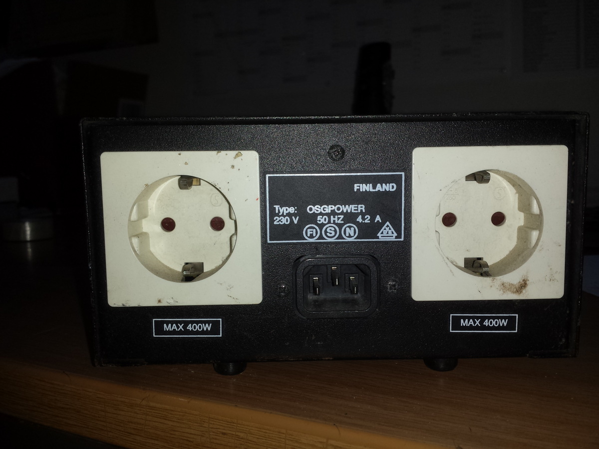 Es hat noch wer anders vor vielen Jahren ein gleiches Gerät im Gerümpel gefunden und die gleiche Frage "Was ist das" in ein Forum gestellt: http://www.technologische-hilfe.de/antworten/hilfe-habe-2-gerate-gefunden-was-ist-das-support-246265422.html Da heißt es: > beim Aufràumen eines Kellers... Vielleicht habt Ihr ja Ahnung davon! > Kiste mit 2 400 Schukobuchesen und einem amerikanischen > Kaltgeràteanschluss Und der Beschriftung FINLAND Type: > OSGPOWER 230 V 50 Hz 4.2 A auf der einen Seite und auf > der anderen ein Breitrbandkabelanschluss! Interessant fand ich die folgende Antwort: > Da bin ich mir jetzt ziemlich sicher. > Das Teil wird wohl über das "Breitbandkabel" an soetwas wie einen > "Licht-Mischpult" angeschlossen. Über den Kaltgeràtestecker wir es > mit Strom versorgt und in die Schukos kommen dann die Scheinwerfer. Das heißt über die fehlende Platine und den Übertrager wurden dann vermutlich irgendwelche Steuersignale zurück über den Übertrager ins Netz gekoppelt, um die Scheinwerfer damit zu steuern. EMV mäßig ganz siche ne Katastrophe schon alleine weil der Power "Input", also die Kaltgerätebuchse, ohne ein "Netzfilter" voll parallel hängt, und daraus auch alles zurück ins Netz ballert. Ich kenne von der Bühnentechnik den Lichtsteuerbus "DMX". Auch schon "bewährte" (nicht mehr junge) Technik. Steuerdaten aber separat vom Power. Der Thread ist von 2004. Und das Teil war da ja schon ausrangiert gefunden worden. Also ab in die E-Schrott Tonne, oder höchstens den Übertrager für Stromversorgung wiederverwerten. OK, als Sammler und Jäger könnte man ggf. auch noch die Buchsen usw. wiederverwerten ;-)