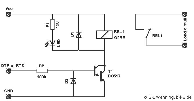Falls das mit dem Kondensator nicht klappt: Kauf Dir irgendein Mikrocontroller Modul mit USB-UART Chip (zum Beispiel ein Arduino Nano) und lade da die serielle Version meiner I/O Firmware drauf (http://stefanfrings.de/avr_io/index.html). Zum Schalten des Relais musst du dann Befehle an den virtuellen seriellen port senden.