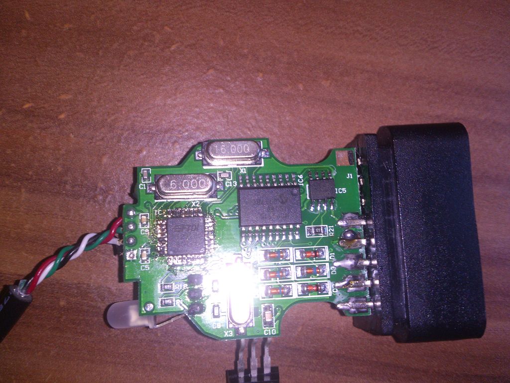 Hallo, ich komme bei einem Problem nicht weiter. Und zwar habe ich einen Adapter von CAN auf PC, wesentlich aus einem ATMEGA16, CAN-Treiber, Speicherbaustein, 7805 und der Schutzbeschaltung für alle Bauteile. Es ist ein fertiger Adapter, also kein Selbstbau etc. Am PC wurde der Adapter plötzlich nur noch als FFFFFFFFFFFFFFFFFFFFF erkannt und natürlich auch kein Treiber installiert. Habe vermutet, das der FT232 defekt sein müsste, weil er ja eig. die USB schnittstelle bietet und wie ich im Datenblatt gesehen habe, einen EEProm wo auch der Name und die ID etc. gespeichert wird. Mit dem FT_Prog wurde der Chip auch nicht erkannt, daher habe ich einen neuen eingelötet. Nun wird der aber auch als FFF... erkannt. Jemand eine Idee, woran es noch liegen kann? Im Gerätemanager steht folgendes: Gerätebeschreibung: FFFFFFFFFFFFFFFFFFFFF Hardware-IDs: USB\VID_0409&PID_0058&REV_0200 USB\VID_0409&PID_0058 Im Anhang vor und Rückseite. Die Lötstellen sind besser als es auf dem Foto scheint (glänzen) und haben keine Brücken ;)