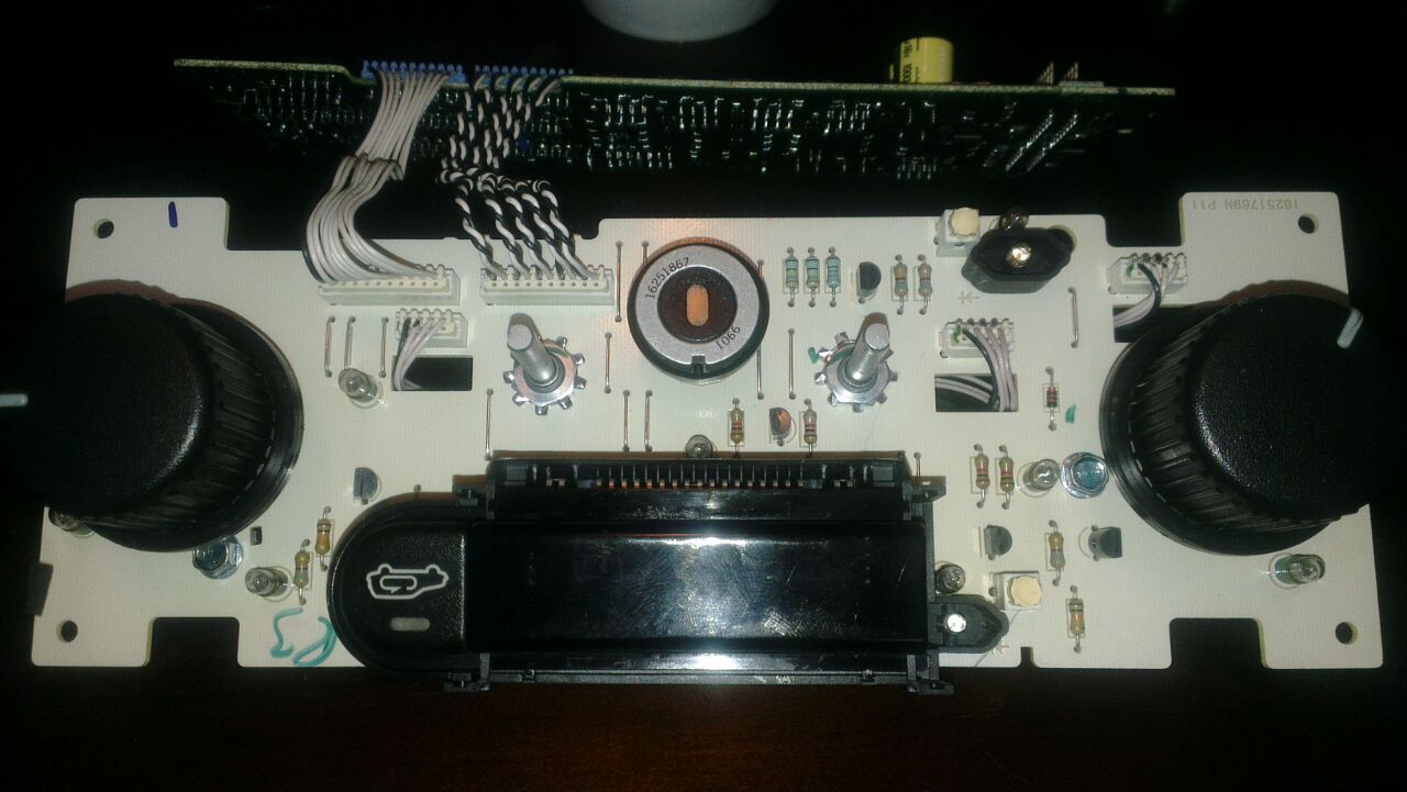 Hier das Board im Überblick. Dazu eine der 12V Lampen von der Seite, ist noch so ein runder Plastikschuh drum. Dann noch ein winziges Lämpchen, weswegen ich die Mission erst angegangen bin. Die ist vom A/C Knopf und leuchtet als einzige nicht, wenn ich drücke. mobil gesendet.
