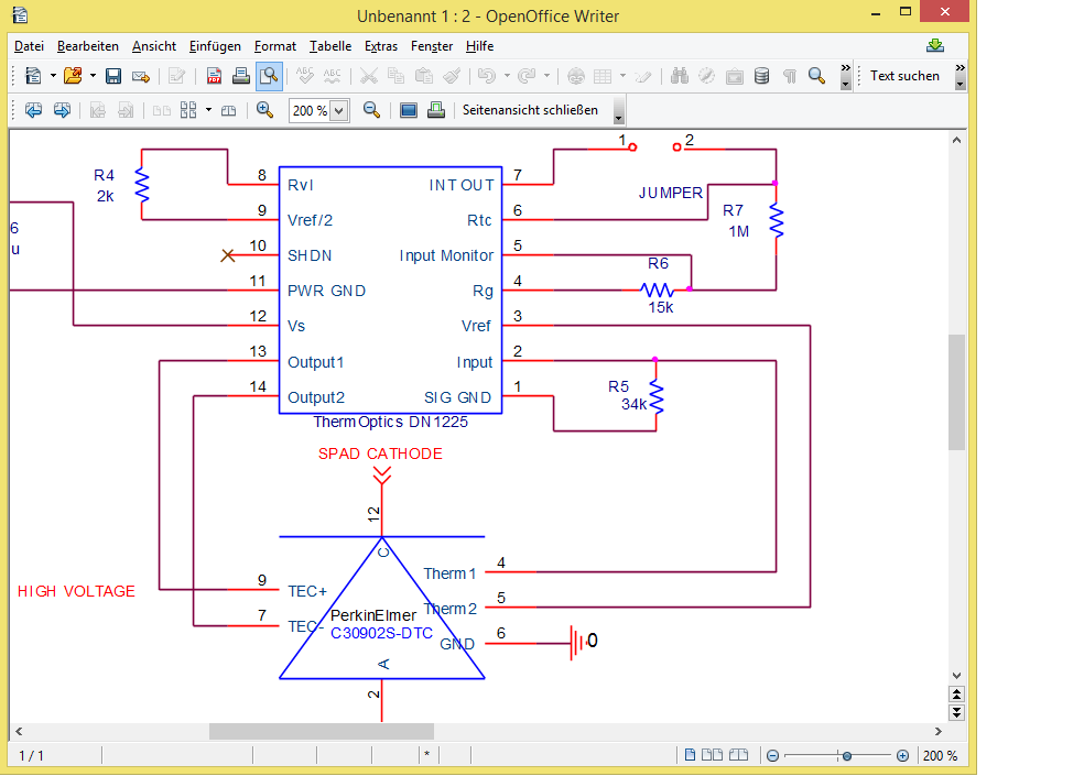 Die Photodiode hat einen zweistufigen Peletier und ist ausgelegt für -20 Grad, ich möchte die Diode einfach primitiv auf -20°C halten ob ich dazu eine Regelung brauche oder nicht das wird sich hier bei der Diskussion herausstellen, ich habe mit so einem TEC Element überhaupt keine Erfahrung und weis nicht was das Ding aushaltet oder nicht. Die Angaben vom Datenblatt für TEC Imax 1,4A und Vmax 2V und Thermistor 43Kohm@-25°C muss ich wahrscheinlich bei der Beschaltung berücksichtigen, von einer Frequenz steht nichts im Datenblatt. Die -25°C bedeuten wahrscheinlich -20°C bei Raumtemperatur weil im Datenblatt steht kleinste Temp -20°C bei Raumtemperatur.