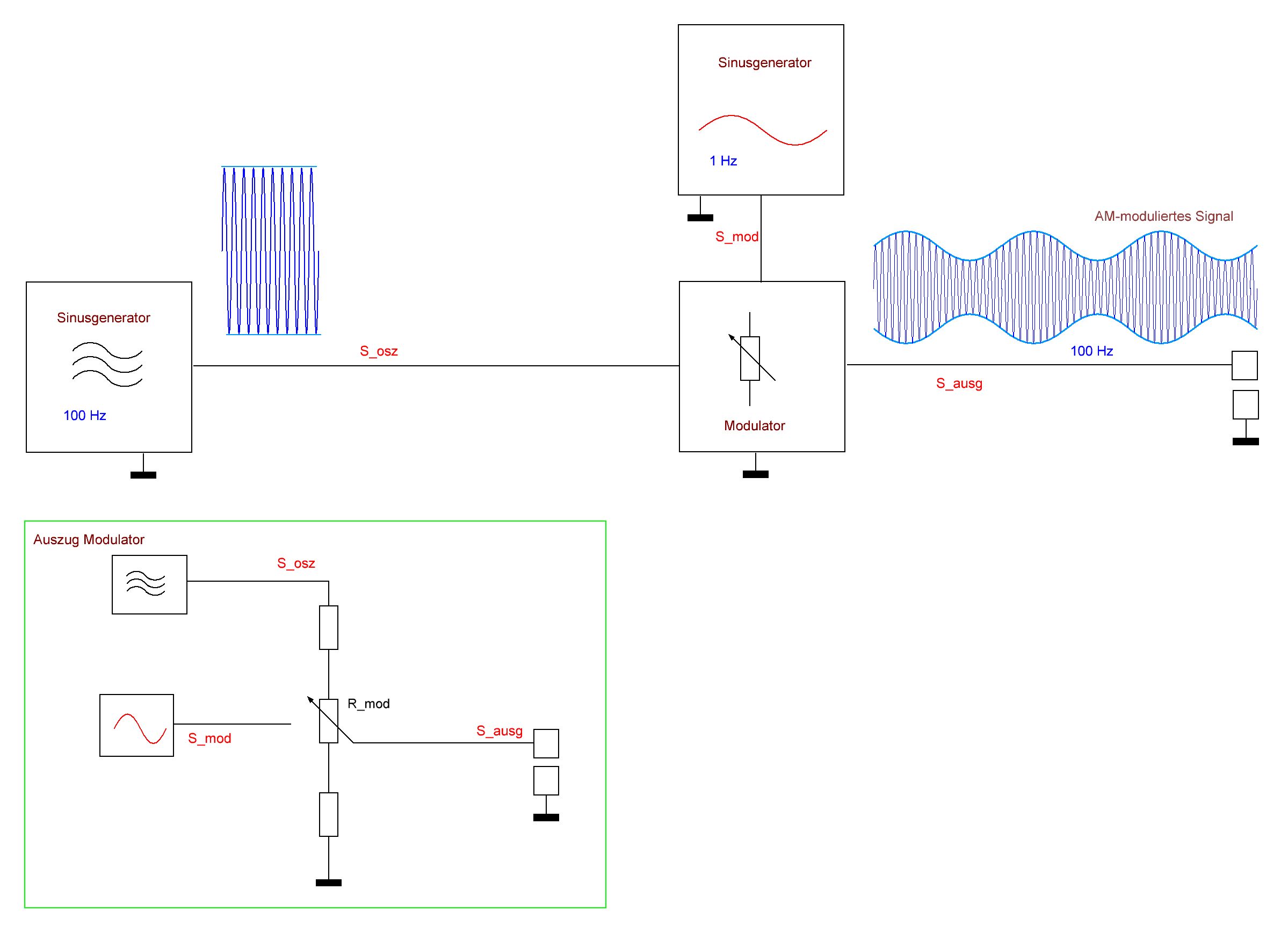 frequenzgleich mit S_mod, jedoch in der Amplitude halbiert.