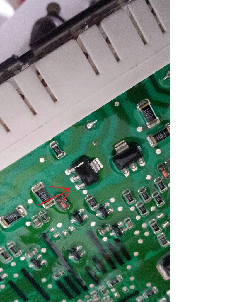 Da ist doch der halbe Deckel weg. Vielleicht hat der tatsächlich die komplette Markierung mitgerissen und es ist nicht nur ein Problem mit dem Zuckerguss. Christian S. schrieb: > Wenn etwas geschaltet werden soll und die Spannung sicht verändert, wird > ja schonmal was geschaltet, klingt erstmal gar nicht so verkehrt. Gate wird angesteuert. Den mutmaßlichen Triac interessiert das mangels Innenlebens kaum noch. Christian S. schrieb: > Du solltest aber mal die komplette Story posten, was dein Problem ist. ACK. Die genaue Bezeichnung der Platine und des Geräts wäre auch nicht verkehrt.