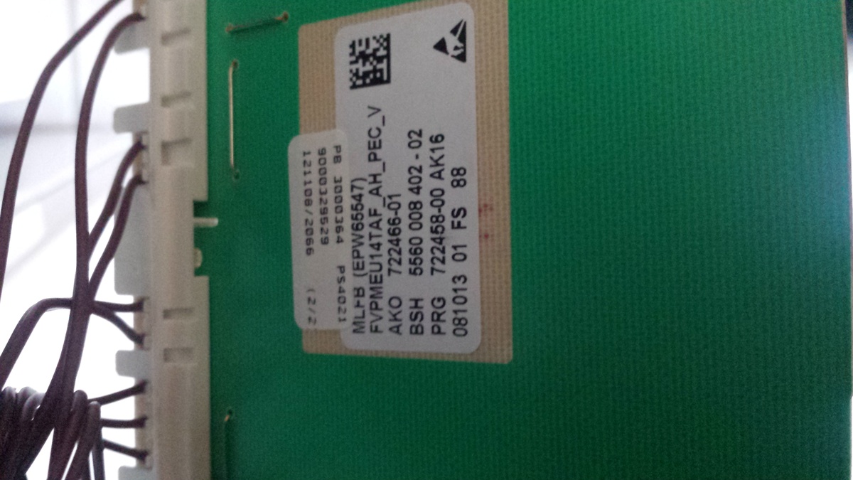 Hallo, es handelt sich tatsächlich um die Steuerung einer Waschmaschine. Das defekte Bauteil steuert ein Ventil zum Wasserreinlaß des Hauptwaschgangs. Die Bezeichnung der Maschine lautet Bosch Maxx6 WAE28140 Ich habe mal das Typenschild der Platine fotografiert und angehängt. Gruß Matthias