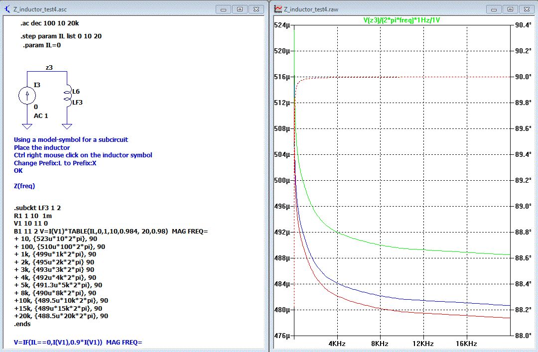 Mit zwei getrennten Quellen könnte man das machen. Eine von beiden hat dabei immer den Wert 0. Achtung, ich habe IL<=10 genommen weil ich eigentlich verstanden habe, daß eine Kurve für 10A und die andere für 15A ist. Außerdem haben da bei eingen Werten "u"(micro) gefehlt und bei der 2. Tabelle war bei 2137Hz ein Anstieg der Induktivität. Den Anstieg habe ich geändert.