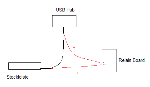 Genau, vier einzelne USB-Kabel an den Hub angeschlossen und jedes dieser verläuft über ein Relais welches dann mit +5V die Steckleisten schaltet. Ich habe mir auch überlegt den Hub zu schalten, problematik ist dabei, dass die Leisten unabhängig voneinander geschaltet werden sollen. Es reicht daher nicht einfach denn Hub zu schalten.