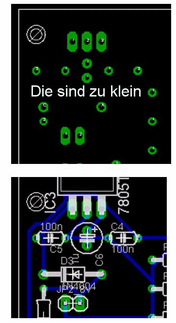 Hoffe das ihr mir helfen könnt! In EAGLE sind die Pads der diskreten Standard Bauteile (R)zu klein im Aussendurchmessser (wenn ich hier bohre, bleibt nix mehr zum anlöten übrig). Siehe auch attched Beispiel. Kann mir da eine(r) weiter helfen? Danke schon im voraus Manni