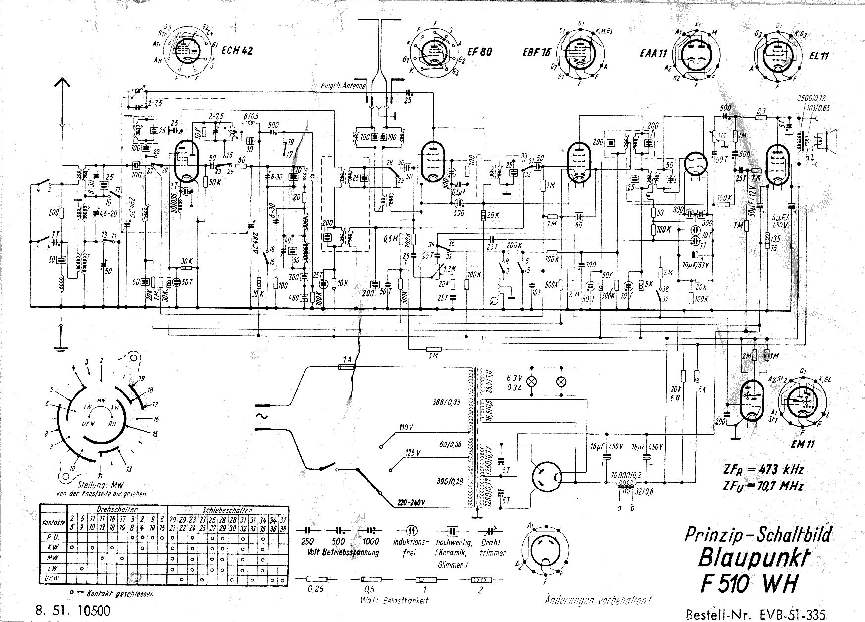 Michael U. schrieb: > Wenn das R51 (10kOhm) ist, ist es ein Anwärter für den Fehler. > Wäre ein 10k 0,5W laut Schaltbild. Ich sehe da in meinem besser lesbaren Plan 30k -- der wäre dann allerdings mit 0,5W etwas unterdimensioniert. Egal, kann der TO ja sehen, die Bauteile sind ja im Klartext bedruckt. ole ole ola schrieb: > Achtung! Dein Plan ist vom 305WF, der TO hat aber einen 305W. Ja, danke! Habe ich auch gesehen und wollte es vor einer Stunde schreiben da ist mir der Rechner böse abgekackt. Das UKW-Mischteil scheint aber identisch zu sein, unterschiedlich ist die NF-Endstufe (EL84 vs. EL41) und die zusätzliche EF41.