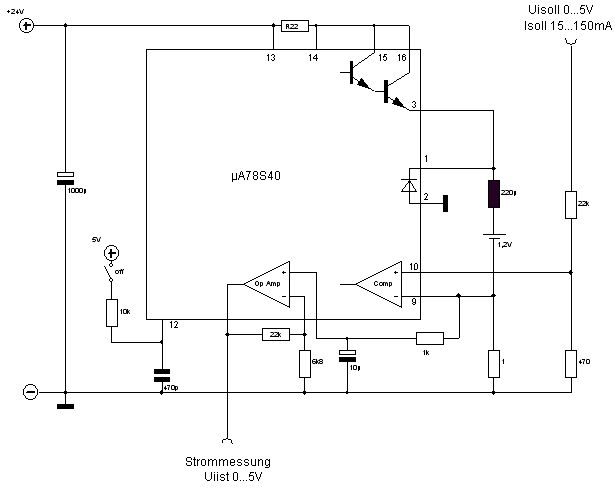 Wenn ichs noch mal genau durchlese, dann hat Axel Schwenke das mit dem "offenen" Komparator schon eingeworfen... @Hermann Wieso hast du noch 10 % Strom bei 0 V ? (Laut Schaltplan)