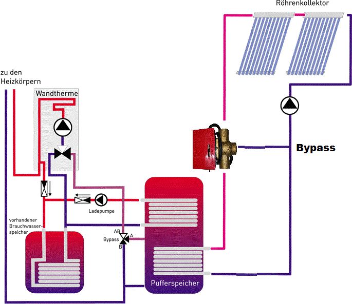 Solarfluid per 3wege-Ventil bei Bedarf da durch. So kann ich