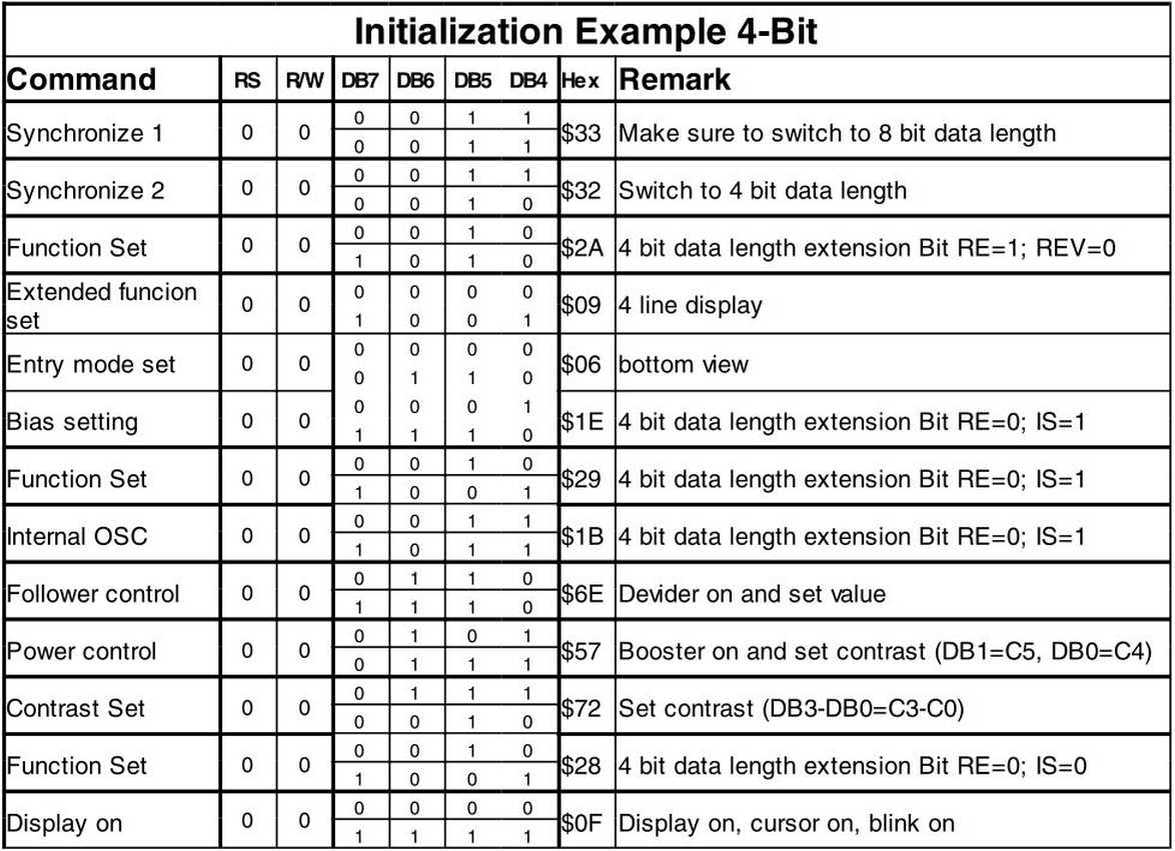 Geröll schrieb: > Aber inbesondere beim Umschalten 8-Bit -> 4-Bit war es wichtig, > dass das Hinterherschicken des Low-Nibbles nicht zu lange dauerte. Wenn > das Low-Nibble nicht innerhalb von 25µs auf das High-Nibble folgte, > hielten die das wohl für ein neues Datenwort oder was der Geier. Solange Du noch im 8Bit-Mode bist, darfst Du natürlich keine Befehle im 4Bit-Mode senden, sondern nur Nibble. Wenn Du schneller als 25µs bist, wird das 2. Nibble ignoriert. Wenn man es aber richtig macht, kann man beliebig langsam senden. Hier mal ein korrektes Init: https://www.avrfreaks.net/forum/tutc-lcd-tutorial-1001