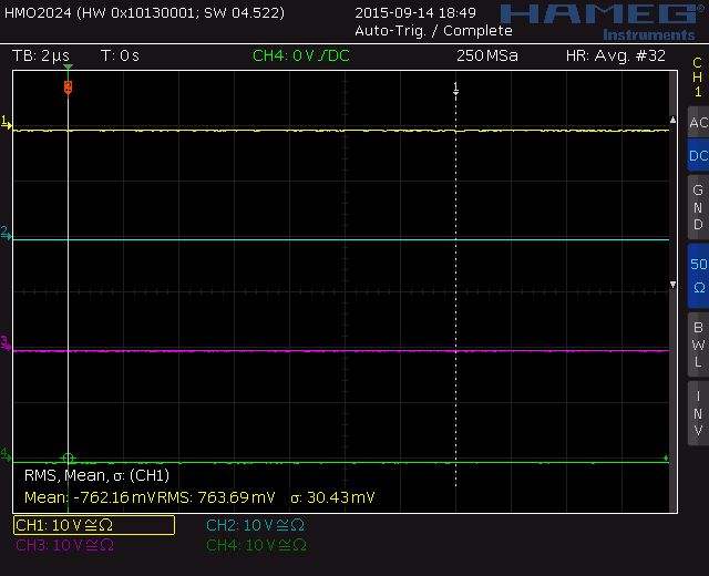 Hallo HMO20xx-Betreiber, trotz Kalibrierung nach langer Warmlaufzeit zeigt mein HMO2024 einen nicht unerheblichen Offset-Fehler von -0,05 bis -0,1 Skalenteilen auf allen 4 Kanälen, siehe Screenshot. Die Einstellung ist, damit der Fehler deutlich zu erkennen ist: High Resolution und Averaging 32 x, Eingänge mit 50 Ohm abgeschlossen. Der Offset ist in Skalenteilen weitgehend unabhängig von der Empfindlichkeit und auch unabhängig davon, ob der Oszi gerade eingeschaltet wurde oder schon lange läuft. Wenn die Eingänge auf GND geschaltet werden, wird der Eingang nicht kurzgeschlossen, sondern digital 0 erzeugt und die Linie liegt dann exakt dort, wo sie zu erwarten ist. Das war von Anfang an so, aber ich hatte gedacht, dass nach einer Kalibrierung alles ok sein würde. War es aber nicht. Habt ihr ähnliche oder andere Erfahrungen? Grüße, Uwe