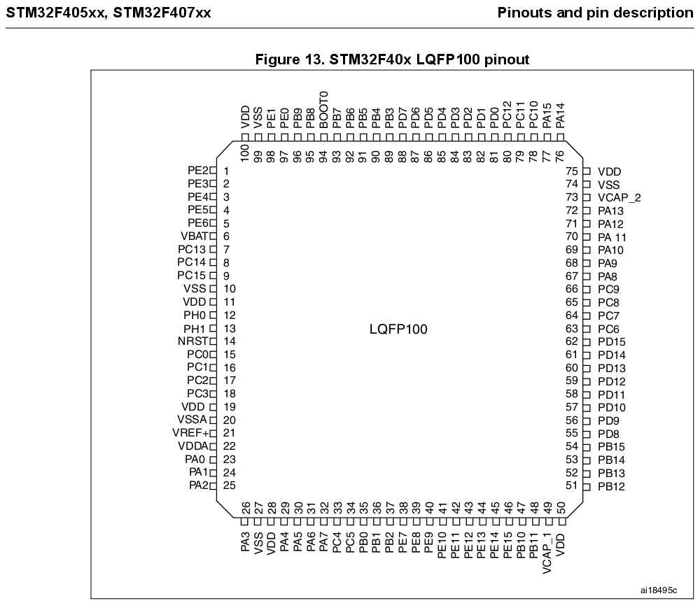 Hallo Forum, leider sind heute bei mir die Zugriffszeiten auf st.com sehr mäßig. Kann mir deshalb jemand sagen, ob es zu dem STM32F407 pinkompatieble STM32F4(2/3)7 Typen gibt. (In der LQFP100 Gehäuse Form.) Ich suche also einen Ersatz für einen 407, der auf die gleiche Stelle auf dem PCB montiert werden kann, aber mehr Leistung in Form von CPU-Takt bringt und vielleicht auch noch andere Features mehr beinhaltet (RAM>/FLASH>, Timer-Anzahl, DA/AD-Bit-Zahl, etc.) Ich hoffe meine Frage genug verständlich formuliert zu haben. Danke! Markus DL8MBY Habe bei Mouser diese Zusammenfassung gefunden: STM32F439VGT6 ============= ARM Mikrocontroller - MCU DSP FPU ARM CortexM4 1Mb Flash 180MHz STM32F437xx/STM32F439xx ARM Cortex-M4 32b MCU+FPU, 225DMIPS, up to 2MB Flash/256+4KB RAM, crypto, USB OTG HS/FS, Ethernet, 17 TIMs, 3 ADCs, 20 comm. interfaces, camera&LCD-TFT Kern: ARM Cortex M4 Datenbus-Weite: 32 bit Maximale Taktfrequenz: 180 MHz Programmspeichergröße: 1024 kB RAM-Datengröße: 256 kB ADC-Auflösung: 12 bit Betriebsversorgungsspannung: 1.8 V to 3.6 V Maximale Betriebstemperatur: + 85 C Verpackung/Gehäuse: LQFP-100 Montageart: SMD/SMT Fabrikat: STMicroelectronics RAM-Datentyp: SRAM Schnittstellen-Typ: CAN, I2C, SAI, SDIO, SPI, UART, USART, USB Minimale Betriebstemperatur: - 40 C Anzahl der ADC-Kanäle: 24 Anzahl der I/Os: 82 I/O Anzahl der Timer/Zähler: 14 Timer Prozessor-Serie: ARM Cortex-M Art des Programmspeichers: Flash Serie: STM32F4 STM32F407VGT6 ============= ARM Mikrocontroller - MCU ARM M4 1024 FLASH 168 Mhz 192kB SRAM STM32F405xx/STM32F407xx ARM Cortex-M4 32b MCU+FPU, 210DMIPS, up to 1MB Flash/192+4KB RAM, USB OTG HS/FS, Ethernet, 17 TIMs, 3 ADCs, 15 comm. interfaces & camera This is information on a product in full production. March 2015 DocID022152 Rev 51/1991 Kern: ARM Cortex M4 Datenbus-Weite: 32 bit Maximale Taktfrequenz: 168 MHz Programmspeichergröße: 1024 kB RAM-Datengröße: 192 kB Fabrikat: STMicroelectronics ADC-Auflösung: 12 bit Betriebsversorgungsspannung: 1.8 V to 3.6 V Maximale Betriebstemperatur: + 85 C Verpackung/Gehäuse: LQFP-100 Montageart: SMD/SMT RAM-Datentyp: SRAM Schnittstellen-Typ: CAN, I2C, I2S, SPI, UART Minimale Betriebstemperatur: - 40 C Anzahl der ADC-Kanäle: 16 Anzahl der I/Os: 82 I/O Anzahl der Timer/Zähler: 10 Timer Verpackung: Tray Prozessor-Serie: ARM Cortex-M Art des Programmspeichers: Flash Serie: STM32F4, sowie die Datenblätter. Sind damit die 407 und die 439 Pinkompatiebel zueinander? Markus