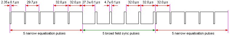 Über Sync-Signale gibts die ausführlichen Informationen im Datenblatt zum Philips Syncpulsgenerator SAA1101. Das sind "amtliche" Timings für höchste Ansprüche: http://www.semiconductors.philips.com/pip/SAA1101_CNV_2.html Er wird nicht mehr produziert, aber das Datenbaltt gibts noch, ich meine von meinen Namensvettern www.kessler-electronic.de habe ich ihn damals bezogen.