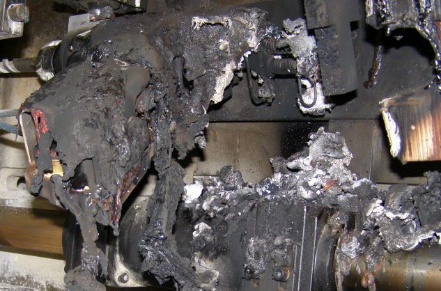 Bei einem Kunden hat sich eine neue Akkubohrmaschine mit LiIo-Akku auf einem Prüfstand entzündet (nach der Benutzung). Laut Aussage von den Mitarbeitern konnte der Akku auch mit einem Feuerlöscher nicht leicht gelöscht werden. Das Resultat im Anhang.