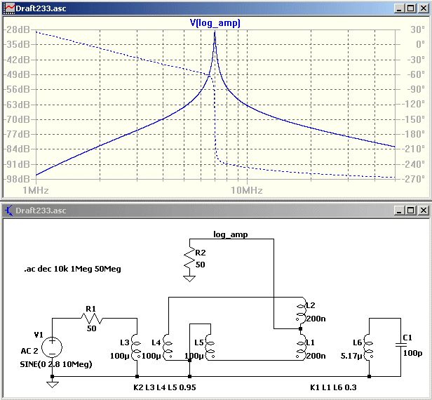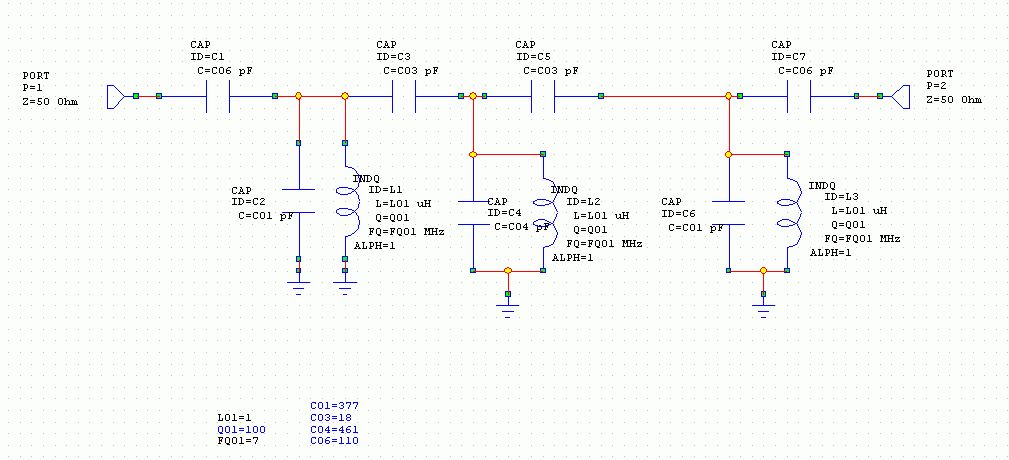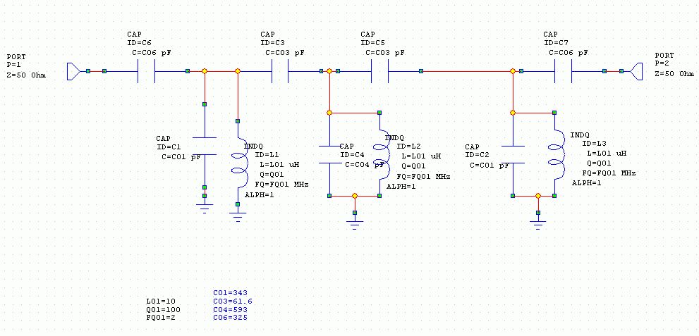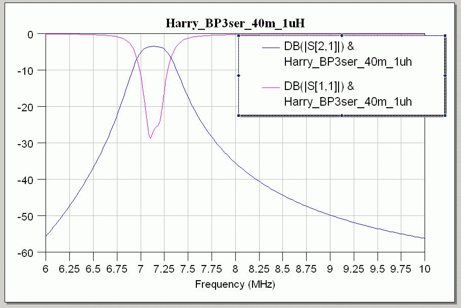 Stelle mir auf einen 50-Ohm-Eingang betrachtet so etwas in der Art vor. Allerdings ohne den enormen Pegelverlust im Durchlassbereich (entsteht er durch die Transformation 50 Ohm --> 3KOhm?).