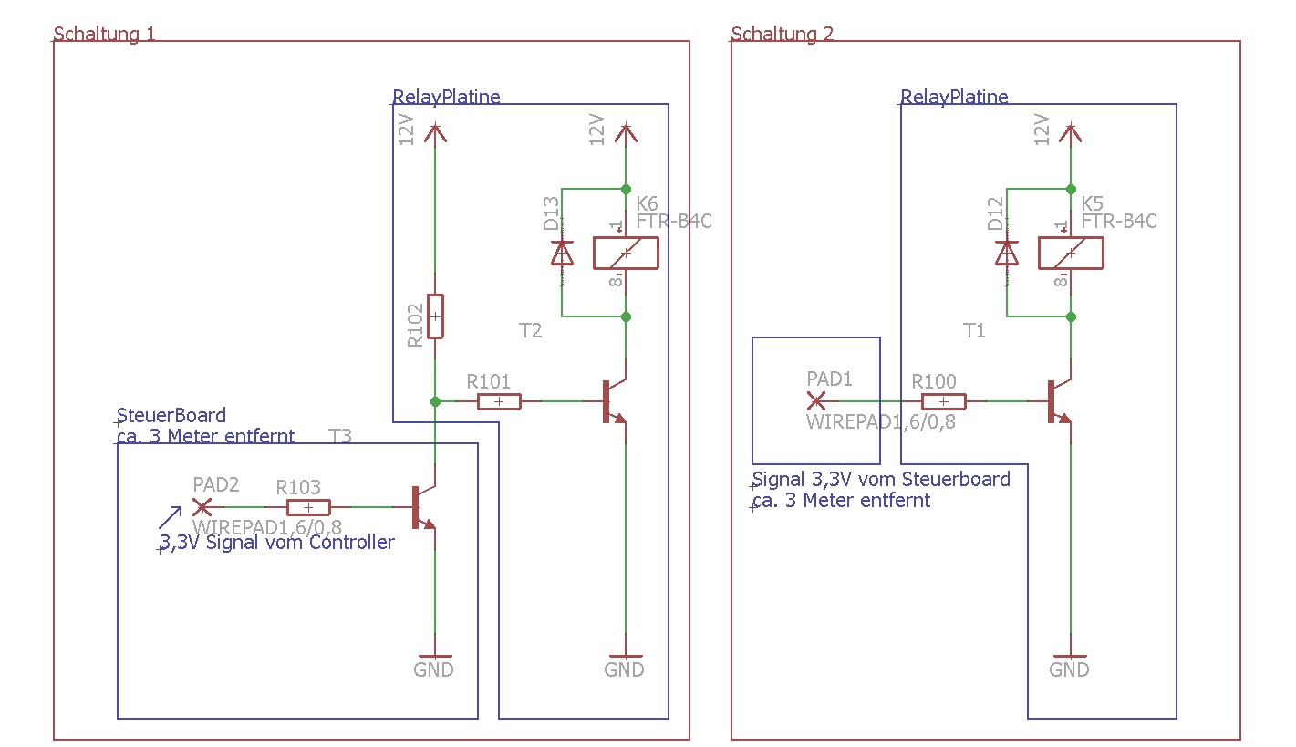 Hallo zusammen, wenn ich mir das alles so anhöre dann mache ich das wirklich so: - Transistoren und Widerstände auf der Steuerplatine - Und nur die Relais auf der Relais Platine. Gruß Stefan