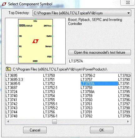 In dieser Tabelle kann man die Typen die "flyback" haben ablesen. http://www.linear.com/parametric/Flyback,_Forward_and_Isolated_Controllers In LTspice gibt es dann jeweils ein Beispiel dazu falls ein Modell im Ordner [PowerProducts] vorhanden ist. Dazu auf den Namen in dem Dialogfenster klicken und dann auf "Open this macro models test fixture" klicken. PS: Vielleicht auch mal ein update machen damit alle verfügbaren Modelle vorhanden sind. Tools -> Sync Release