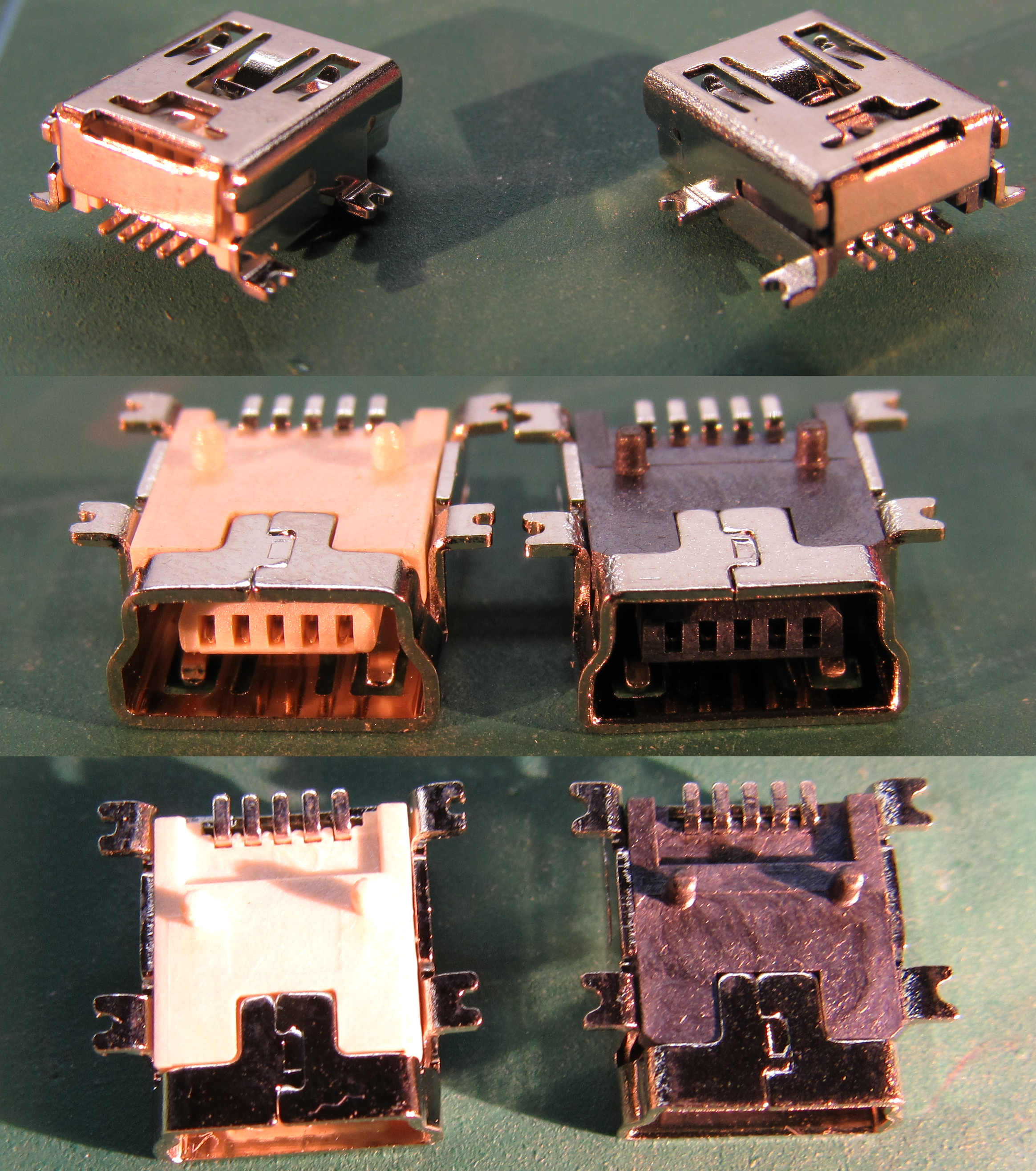 Bei den Stiftleisten ist offensichtlich rechts im Bild die Billigversion, bei den USB-Dingern müsste es umgekehrt sein (würde dafür aber nicht meinen Arsch verwetten).