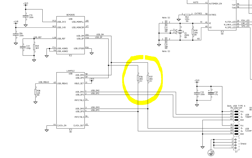 Kann mir das jemand erklären (R36/R37)? Soll das eine Bestückungsvariante sein für ein Board ohne den LAN9512 mit dann nur einem USB-Port? http://www.rs-online.com/designspark/assets/ds-assets/uploads/knowledge-items/raspberry-pi-model-b-schematics-revision-2/Raspberry-Pi-R2.0-Schematics-Issue2.2_027.pdf Seite 3