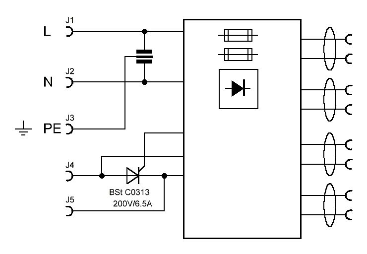 Messwerte: A = Anode Thyristeor K = Kathode L = Phase N = Null A - K = 0V L - A = 124V L - K = 124V N - A = 105V N - K = 105V L - N = 229V > Was misst Du denn über dem Thyristor für eine Spannung? 0V > Möglicherweise > dient er zur Überbrückung eines (externen) Anlaufstrombegrenzenden > Widerstandes (könnte zum Testen, vielleicht ein 60W Glühobst sein). Deswegen schrieb ich die Werte des Thyristors dabei. Zum einen ist der zur Kühlung auf das Gehäuseblech geschraubt und zum anderen wird der wohl bei 230V dicke Backen machen, weil der eben nur für 200V ausgelegt ist. Aber ich bin mir ziemlich sicher, dass der angeschlossen werden muss. Für den Anschluss hinten (VG-Leiste) habe ich irgendwo ein Anschlusskabel. Das dumme ist nur, ich finde es nicht wieder. Aber damit läuft das Netzteil, wenn man eben den Stecker in die Steckdose stöpselt. Auch im Netz habe ich KEINE Info darüber gefunden. Es ist übrigens ein Siemens Schaltnetzteil VB 106N Daten: 140VA (sek.) Ausgänge: U1 = 5V/8A U2 = 5V/1A U3 = 15V/2A U4 = 15V/2A > Wenn > der Widerstand fehlt, läuft das NT nicht an, daher wird der Thyristor > nicht gezündet. Genaueres kann man aber nur sagen, wenn man die > Eingangsschaltung (wenigstens teilweise) gesehen hat, daher würde ich > erstmal von o.g. Versuchen abraten. Und wegen der Bauweise (3 Leiterkarten übereinander mit ca. 1,5 cm Abstand) wird das sehr schwer werden, aber auch die Verkabelung ist sehr kompakt da drin. Das NT wiegt bei 10 x 11 x 17 cm Größe ca. 2,2 kg.