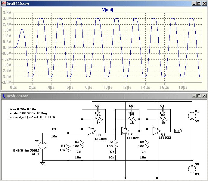PolaBaer schrieb: > Ja nur um die 500 kHz waere es fuer mich interessant... Moechtest du auf > einen Bandpass-Filter hinaus? Genau das. Wenn du den Gleichspannungsbereich nicht brauchst, empfiehlt es sich, nur eine AC-Kopplung zwischen den Stufen zu machen, damit du Offset und Offset-Drift vom Hals hast. > Umso "reiner" umso besser fuer mich. Auch aus Sicht des Rauschens wird dann eine Bandbreitenbegrenzung sinnvoll sein. Insbesondere das breitbandige Rauschen der ersten Op-Stufe kommt zu deinem Eingangssignalrauschen hinzu.