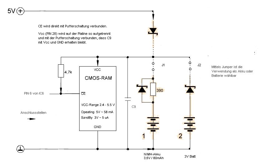 Schottky-Diode. Um diese Spannung ist GND vom RAM gegenüber GND vom
