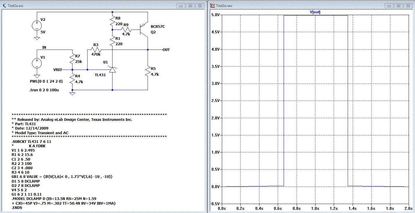 Hallo Matthias, hänge doch mal die Schaltplandatei(.asc) und das TL431-Symbol(.asy) an. Dann kann man mitsimulieren. Gruß Helmut