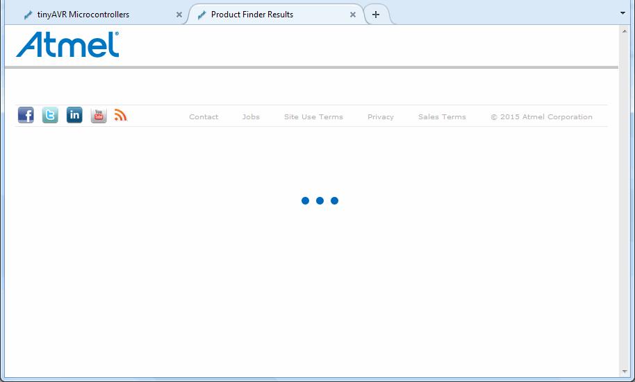 Moinsen, versuche gerade vergeblich, auf der Atmel Homepage den Microcontroller Selector zu verwenden, um mir einen tinyAVR für ein Projekt rauszusuchen. Also auf der Atmel-Website von hier aus http://www.atmel.com/products/microcontrollers/avr/tinyavr.aspx entweder auf den blauen Button links außen "Microcontroller Selector" oder oben auf den Tab "Product Search" geklickt. Dann öffnet sich ein neues Browser-Tab, in dem eigentlich die parametrische Suche erscheinen sollte, aber darin bekomme ich nur eine Reihe animierte blaue Punkte und nichts sonst tut sich. (siehe Screenshot) Browser ist Firefox 41.0.2 unter Win 7 x64, den gleichen Browser unter Android aufm Smartphone (auch per LTE statt übers WLAN) hab ich auch ausprobiert... Habe schon alle möglichen Einstellungen ausprobiert, auch mal Adblock und Ghostery disabled, immer das gleiche. Ich frage mich langsam, ob Atmel das gerade verbockt hat, oder ob das Problem auf meiner Seite liegt. Könnte bitte mal jemand verifizieren, ob bei ihm die Seite funzt? Gruß, Thorsten