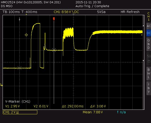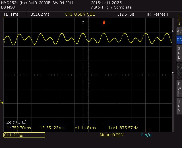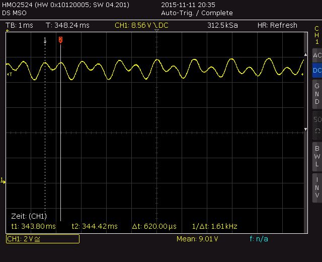 Earl S. schrieb: > vermutlich schließt der nsa-Kontakt im Nummernschalter nicht richtig. > Der Strom auf deinem ersten Bild sollte schon beim Aufziehen des > Nummernschalters auf den Maximalwert ansteigen, nicht erst nach dem > ersten Wählimpuls. > Der Adapter erkennt das Schließen des nsa-Kontaktes (Spannung am Telefon > wird 0V) und zählt dann die Impulse. > Bei dir fängt er wohl erst beim zweiten Impuls an zu zählen. > > Wähl mal eine 1, kommt dann ein DTMF-Ton? Dieser Hinweis klang sehr vielversprechend, danke :-) Trifft aber leider nicht zu. Der Strom beim Aufziehen des Nummernschalters wurde nur durch die Stromregelung des Netzteils begrenzt. Bei geschlossenem nsi fließt ein Strom von ca. 38mA, was über den eingestellten 30mA des Netzteils liegt. Wahrscheinlich regelt das Netzteil nicht schnell genug nach, auch wenn es das eigentlich sollte (evtl. weil ich zwei Kanäle in Reihe verwende...) Wenn ich die Spannung soweit herunter drehe, dass die Strombegrenzung nicht mehr anschlägt, steigt der Strom schon beim Aufziehen des Nummernschalters auf den Maximalwert. Der Adapter liefert auch beim Wählen einer '1' einen DTMF Ton, aber scheinbar einen falschen. Die ersten drei angehängten Screenshots zeigen das Wählen einer '1', die letzten 3 das Wählen einer '2'. Statt '1' und '2' (697Hz / 1209Hz bzw. 697Hz / 1336Hz) werden scheinbar ein 'A' und ein 'B' (697Hz / 1633Hz bzw. 770Hz / 1633Hz) ausgegeben. Die Signale habe ich an den b und a Klemmen einer Fritzbox 7490 mit nachgeschaltetem IMV / MFV Adapter aufgezeichnet. Ich werde wohl mal den Hersteller kontaktieren.