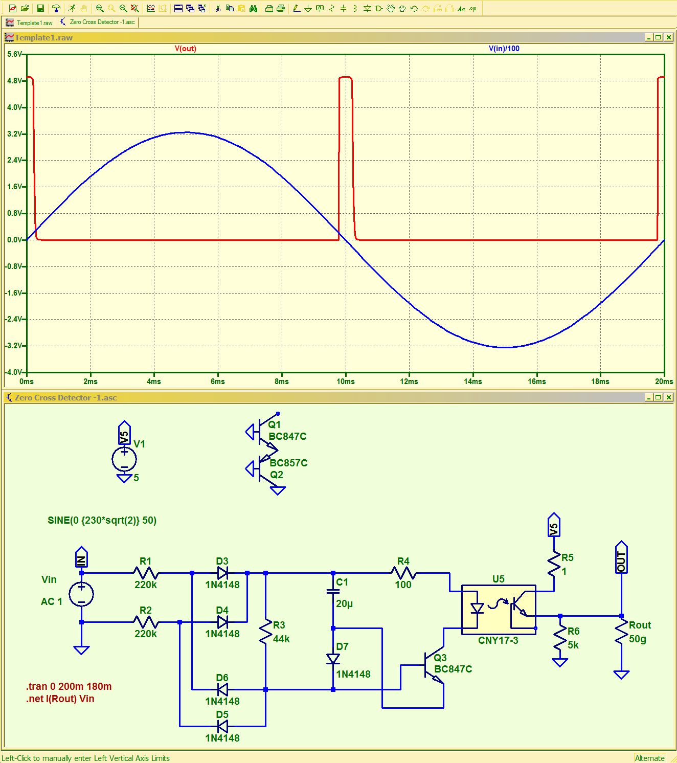 Hallo! Ich brauch eine kleine Schaltung, wie ich von der Spannung an einer 230V-Steckdose die Nulldurchgänge bekomme. Ausgang der Schaltung soll ein Rechteck mit TTL-Pegel sein, die Flanken sollen die Nulldurchgänge durchstellen. Versorgung ist +5V. LG, Schlaumy