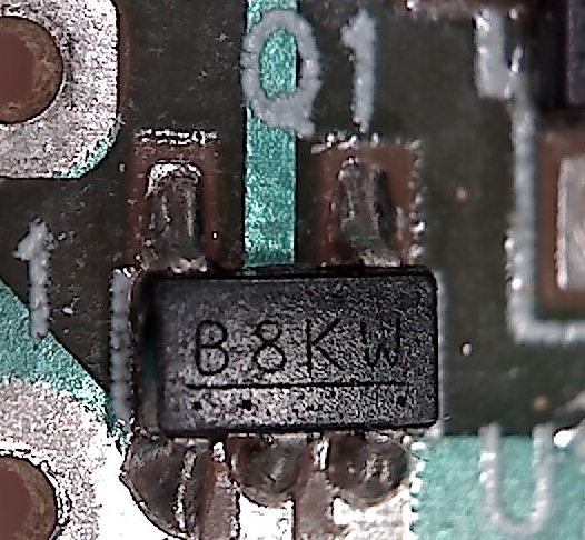 S-808xxC http://datasheet.sii-ic.com/en/voltage_detector/S808xxC_E.pdf Könnte vom Pinout passen, wobei im Datenblatt nicht explizit die Aufschrift "B8KW" zu finden ist. Edit: Laut Beschriftung ist es ein Transistor. Dann ist es wohl eher kein S-808xxC.