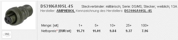 Hallo Ulrich. Ulrich P. schrieb: > Hat keiner eine Idee, wie diese Stecker heißen könnten? Eine Vermutung, weil ich die Größe schlecht schätzen kann: Diese Stecker waren früher mal besonders in vierpoliger Ausführung an Funkgeräten verbreitet. Es gab aber auch zwei, drei und bis siebenpolige(?) Ausführungen. So in etwa: http://www.pmr-funkgeraete.de/Funkgeraete/Stecker-Adapter/Mikrofon-Stecker/2pol-Stecker-Japan-Norm::7451.html Ein konkreter Hersteller ist mir nicht bekannt. Typischerweise waren sie alle aus vernickeltem/verchromten Messing oder Neusilber mit schwarzem Kunststoff Isoliereinsatz. Alle hatten einen Schraubüberwurf, hielten den Isolierkörper durch eine winzige "Holzschraube". Die Zugentlastung erfolgte durch ein Klemmstück, das mit zwei winzigen Schrauben an seinem Gegenpart befestigt wurde. Eine Herstellerbezeichnung habe ich nie gesehen, aber der Aufdruck "Japan" war allgegenwärtig. Darum mein Google-Versuch mit "Japan Stecker Funk Mikrophon". "Japan Stecker" alleine fördert ganz anders geartetes Auto- und Motorradzubehör ans Licht. Mit freundlichem Gruß: Bernd Wiebus alias dl1eic http://www.l02.de
