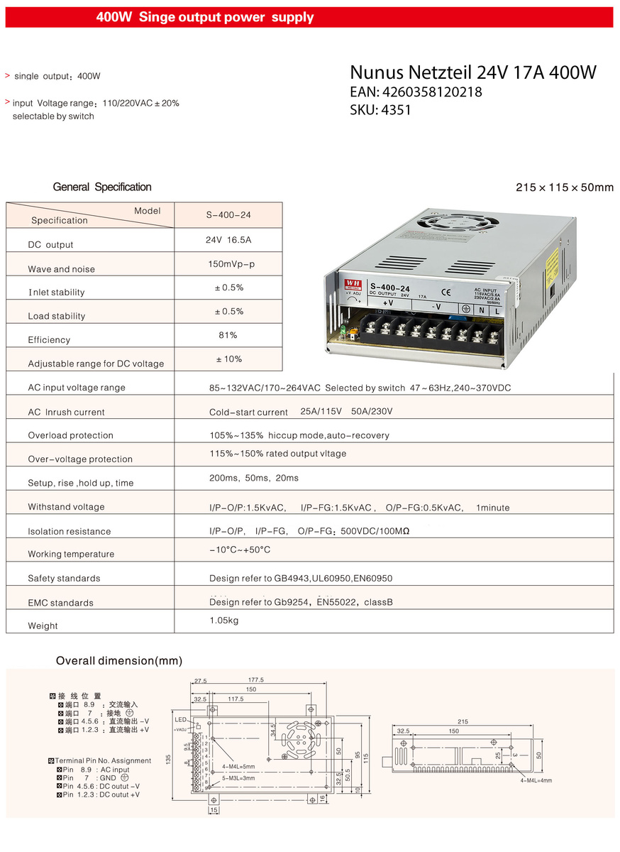 Julian schrieb: > Ich kann kein Datenblatt dazu finden http://www.keycoon.de/devisions/details/104352/Nunus_Netzteil_24V_17A_400W_f%C3%BCr_3D_Drucker.html
