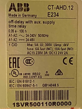 Dietrich L. schrieb: > PPS: Kannst Du die Typenbezeichnung des Relais genauer lesen? Das Bild > ist da etwas "unklar". Es gibt zur Not auch ein Datenblatt von dem ABB E234 CT-AHD.12 https://library.e.abb.com/public/e0120f4eec7dd0bcc1257df6003a37e0/2CDC111161D0201.pdf