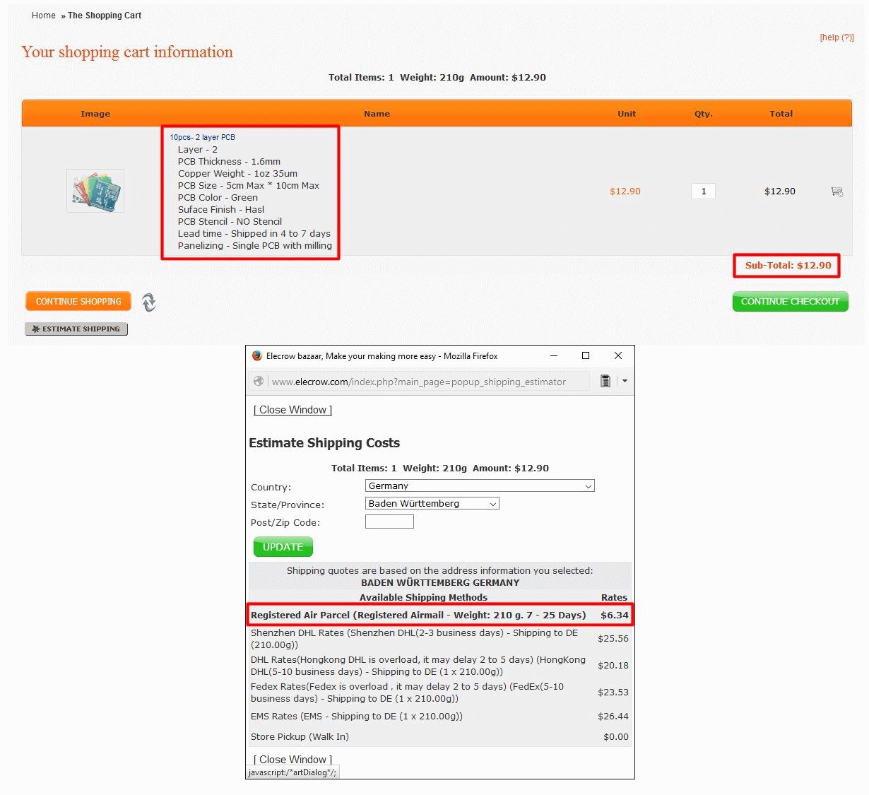 Sven B. schrieb: > Naja. Elecrow fertigt 10 Platinen 10x5 für 10 Dollar. Wie hoch sind die Versandkosten für 10 x 10x5 ?