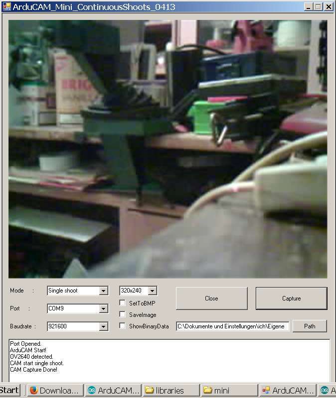 Hast Du die Kamera schon? Die einzige Bezugsquelle scheint hier zu sein: http://www.uctronics.com/arducam-mini-module-camera-shield-w-2-mp-ov2640-for-arduino-uno-mega2560-board.html