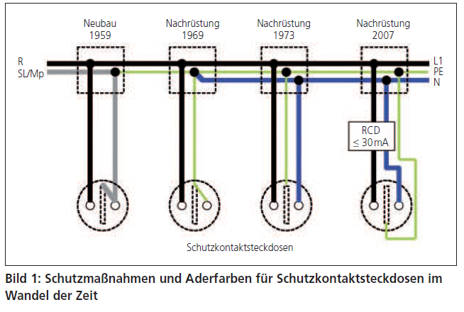 Was ist das denn für ein Unsinn in dem angehängten Bild??? Da ist bei "Nachrüstung 1969" eine grün-gelbe Ader als Zuleitung an der Steckdose. Also das geht ja gar nicht!