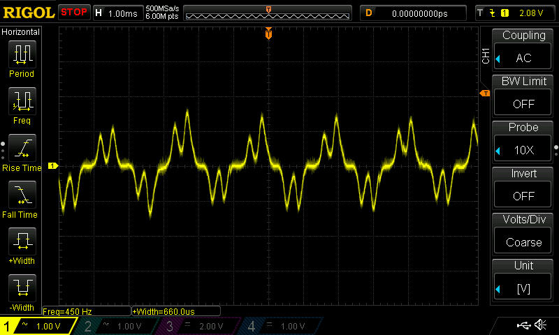 Bei Testläufen, verhält sich alles sehr neutral, Ohne Rotor habe ich einen fast perfekten Sinusförmigen Strom. Ich vermute stark, das das Problem am Motor liegt, da diese Art eigentlich für die verbreitete Blockkommutierung ausgelegt ist, werde mir demnächst einen PMSM o.ä. besorgen, mal sehen.