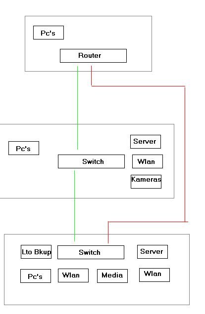 Hallo miteinander. Ich hätte da mal eine Frage zum Netzwerk (Leider gibt es noch keine Kategorie Netzwerk) Und zwar habe ich einen Router und 2 Switche's diese sind wie auf dem Bild Grüne linie verbunden. Nun ergibt sich gerade das ich ohne viel Aufwand die Rote verbindung noch einbauen könnte. Würde das sinn machen oder würde das sogar Stören? Wenn der mittlere Switch ausfällt würde die Verbindung Router und unterer Switch zumindest noch laufen? oder Würden die daten im Kreislaufen und es eine art Rückkopplung geben? Könnte man somit viliecht sogar die Geschwindigkeit zwichen Router und Switch von 1gigabit auf zwei verbessern?