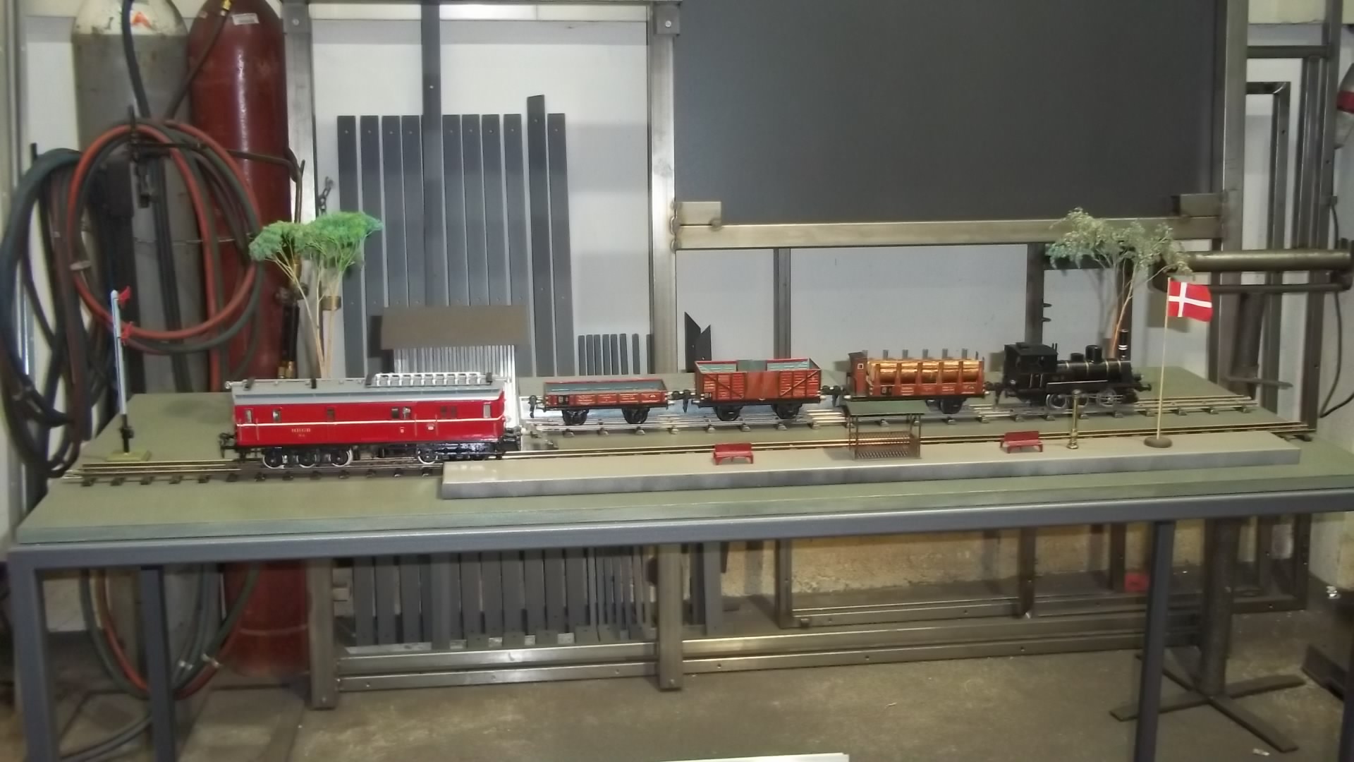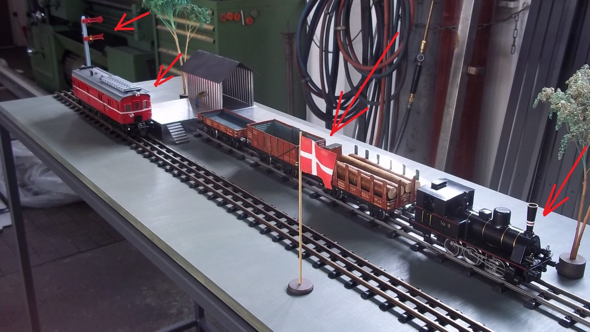 Da gibt es schon Einiges, was dänisch ist: A: Das Signal ( Selbstbau ) B: Die Diesellok ( Selbstbau ) C: Die Flagge ( Selbstbau ) D: Die kleine T3 ( Selbstbau) Ein interessantes Thema ist die T3, ein früher deutscher Exportschlager. Die wurde nach gleichen Plänen von diversen Firmen gefertigt und weltweit verkauft. Einige wenige Exemplare haben überlebt, so existiert im Eisenbahn- museum Neustadt eine funktionsfähige Lok. Grüße Bernd