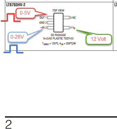 Hi bin am basteln und habe mir folgende Lösung abgeschaut die mir gut gefällt, die ich aber nicht verstehe. Das Eingangssignal (serielle Daten) liegt bei HIGH = ca. 24 Volt und Low bei < 8 Volt. Das Ausgangssignal soll im Bereich von 5 Volt als Rechteck liegen. Nun habe ich folgende Realisierung gesehen und frage mich warum dort 5 Volt rauskommen. SOT-23 Regler wie LT6703HV VS = 12 Volt IN = 0-28 Volt OUT = 0-5 Volt Es is sonst keine Beschaltung erforderlich. Wo kommen denn die 5 Volt her ? Hat einer eine Idee ? VG Bernd